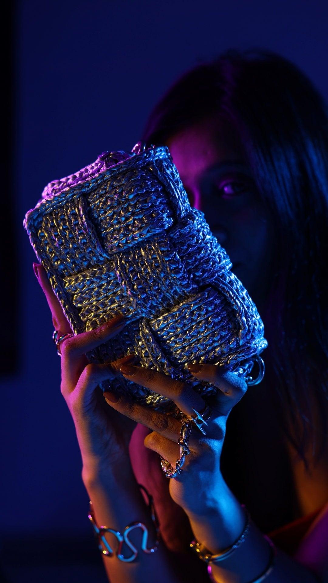 At Kvarski, every luxury handbag is more than an accessory—it's a masterpiece born of meticulous craftsmanship and conscious creativity. Our journey starts with the selection of premium vegan yarns, chosen for their distinctive textures, luminous metallic finishes, and ethical integrity.